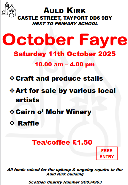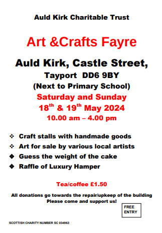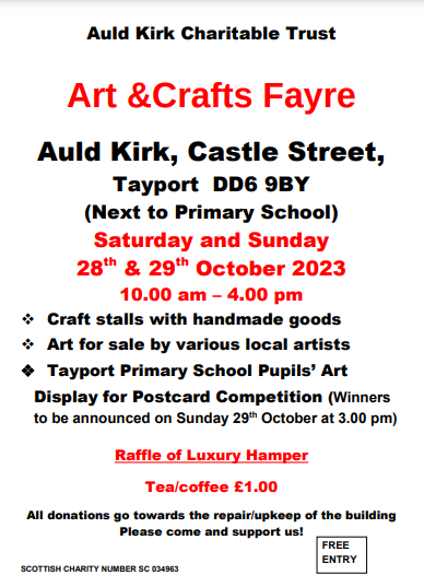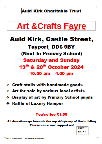 On the weekend of 15-17 October, the Auld Kirk will be having an Art & Crafts Fayre