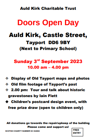 Tayport Auld Kirk, with its distinctive leaning clock tower, is one of the best known landmarks in the area. It has been recognised by Historic Scotland as a "B" listed building, together with its unique graveyard. The Auld Kirk Charitable Trust, was constituted as a charity in 2003 in order to bring the building into new uses, in a sustainable plan for the future. The Auld Kirk will be a centre for cultural, social, heritage and educational purposes.